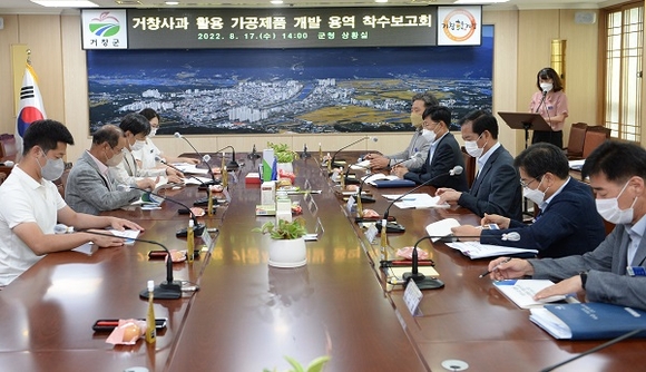 경남 거창군은 지난 17일 군청 상황실에서 구인모 군수를 비롯한 관련 단체 대표, 관계공무원 등이 참석한 가운데 '거창사과 활용 가공제품 개발 용역' 착수보고회를 가졌다.