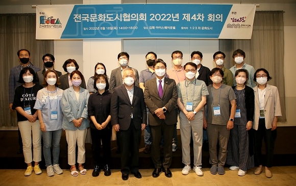 경남 김해시는 18일 아이스퀘어호텔 2층 연회장에서 전국 18개 법정문화도시의 센터장과 담당자를 초청해 전국문화도시협의회 회의를 가졌다.