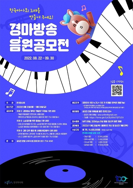 접수일은 오는 22일부터 30일까지며, 제출 음원 파일의 형식은 mp3, 음질은 320kbps이어야 한다. 마사회 홈페이지에서 참가신청서, 개인정보 수집 및 이용 동의서, 응모각서를 다운받아 작성한 후 음원 파일과 함께 이메일 또는 구글폼으로 제출하면 된다.