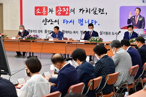 경남 양산시는 18일 오후 시청 대회의실에서 지역 현안사항을 논의하고 국·도비 확보를 위해 국회의원, 도의원, 시의원을 초청해 시정간담회를 열었다.