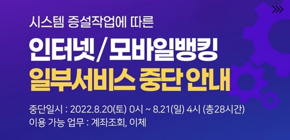 8월 20일 0시~21일 4시 시스템 교체작업 진행...대출 실행·기한 연장 등 업무 중단