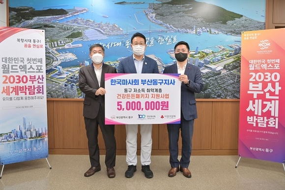 한국마사회 부산동구지사는 최근 관내 취약계층 '건강든든패키지 지원사업' 후원금으로 500만원을 부산 동구청에 전달했다.