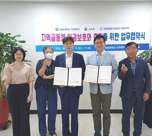 창원대학교 인권센터는 대한법률구조공단 창원지부와 인권업무의 전문성 강화, 법률지원체계 구축 등을 위한 상호 업무협력 협약을 체결했다고 22일 밝혔다.
