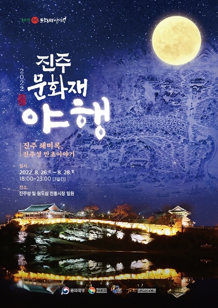 문화재청과 경남도, 진주시가 주최하고 진주문화관광재단이 주관하는 '2022 진주 문화재 야행(夜行)'이 오는 26일부터 28일까지 야간(18시~23시)에 진주성 및 원도심 전통시장 일원에서 열린다.