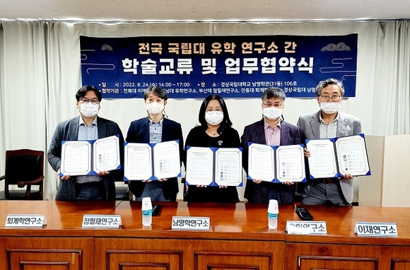 경상국립대학교 경남문화연구원 남명학연구소는 24일 오후 남명학관 세미나실에서 전국 국립대학 유학 연구소 간 업무 협약을 체결했다.