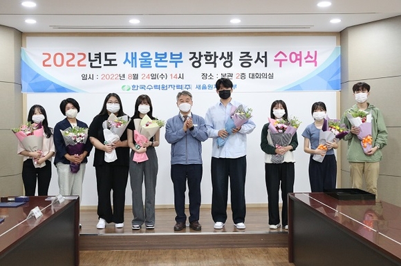 24일 본관 2층 대회의실에서 새울원자력본부는 발전소 주변지역 장학생으로 선발된 학생과 학부모가 참석한 가운데 2022년도 새울본부 장학생 장학 증서 수여식을 개최했다. (사진=새울원자력본부 제공)