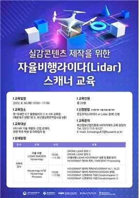 부산정보산업진흥원은 오는 30일 ICT융합빌리지 內 K-XR교육장에서 '실감콘텐츠 제작을 위한 자율비행라이다(Lidar) 스캐너 교육'을 진행한다고 26일 밝혔다.