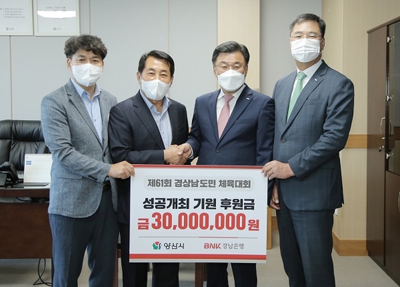 BNK경남은행은 제61회 경남도민체육대회의 성공적인 개최를 위해 양산시에 ‘후원금 3000만 원’을 기탁했다고 26일 밝혔다.