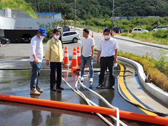 정종복 군수는 28일 피해 상황을 보고받고 아쿠아드림파크 현장을 긴급히 방문해 현장을 지휘하고 시·군의원, 관계부서 및 기관 담당자 등이 참여하는 현장대책회의를 주관했다.