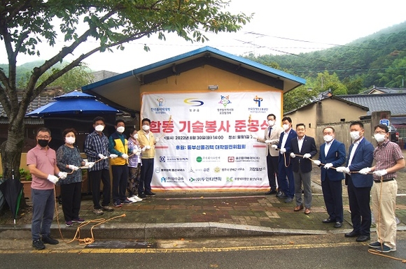 지난 30일 월평마을에서 한국폴리텍대학 동부산캠퍼스는 합동 기술봉사 준공식을 진행했다. (사진=동부산 폴리텍 제공)