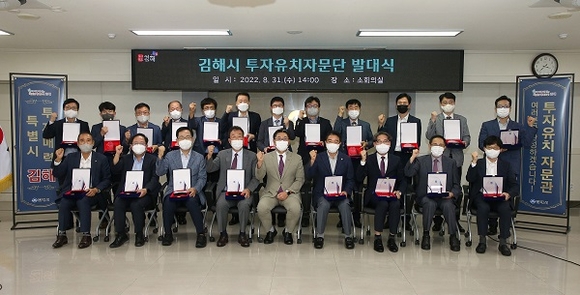 투자유치자문단은 김해시장을 단장으로 출향인사 중 기업 대표, 지역기업 대표, 경제통상 분야 전문가, 지역 대표 등 자문관 23명과 전·현직 국회의원인 고문 3명을 포함해 총 27명으로 구성됐으며, 임기는 2년이다.