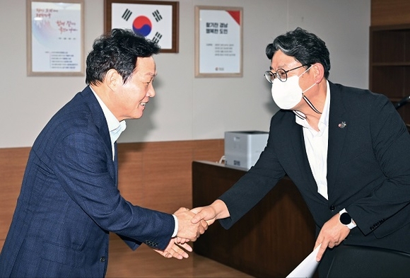 홍 시장은 지난 2일 경남도청에서 박완수 경남도지사를 만나 '도립 김해공공의료원 설립'과 '동북아 물류플랫폼 조성사업' 등 김해시의 현안사업과 도비 지원사업에 경남도의 관심과 적극적인 지원을 요청했다.
