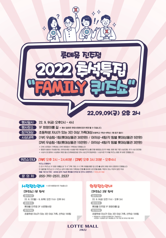 롯데몰 진주점은 오는 9일 개점 6주년과 추석 명절을 맞아 '패밀리 퀴즈쇼'를 진행한다고 7일 밝혔다.