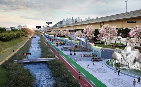 6일 시에 따르면 해반천 여가공간 조성사업은 총사업비 80억원을 들여 해반천 전체 11.5km 구간 중 연지교에서 경원교 사이 500m 구간에 다목적운동장, 공연장, 친수벽화, 놀이터, 경관조명, 보도교 등을 설치하는 사업으로 내년 1월 시작돼 2024년 5월 준공 예정이다.