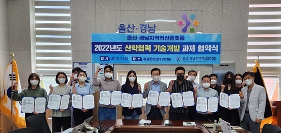 울산·경남지역혁신플랫폼 총괄운영센터는 핵심분야 사업단, 주관기관 과제 책임자들과 함께 지자체 및 산업체 수요에 기반한 전략 공모과제 77건, 약 70억 원 규모의 신규과제를 선정해 지난 7일 총괄운영센터 회의실에서 협약식을 가졌다.