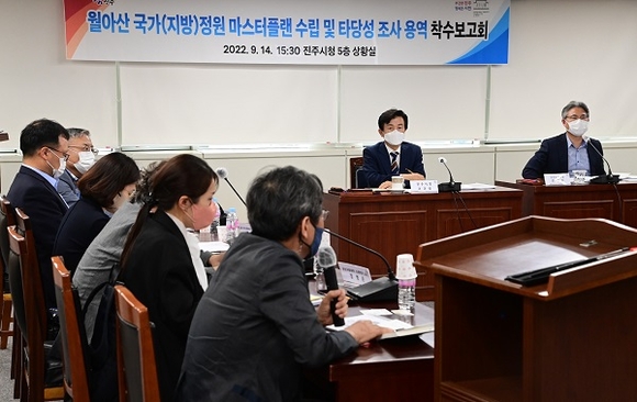 경남 진주시가 14일 시청 5층 상황실에서 '월아산 국가(지방)정원 마스터플랜 수립 및 타당성 조사 용역 착수보고회'를 열고 월아산 국가정원 추진을 위한 첫발을 내디뎠다.