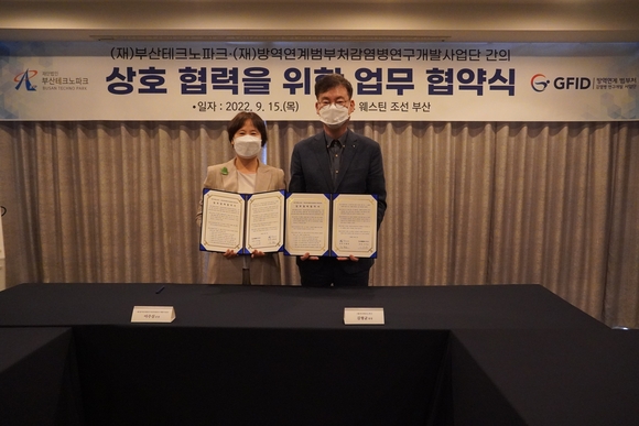 부산테크노파크는 15일 방역연계범부처감염병연구개발사업단과 '감염병 대응 연구성과 활성화와 대규모 실증 연구를 위한 업무 협약'을 체결했다고 밝혔다.