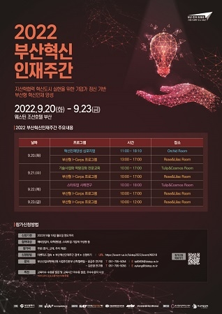 부산산업과학혁신원(BISTEP)은 오는 20일부터 23일까지 4일간 부산형 혁신인재 양성방안을 다각적으로 모색하기 위한 ‘2022 부산혁신인재주간’을 개최한다고 밝혔다.