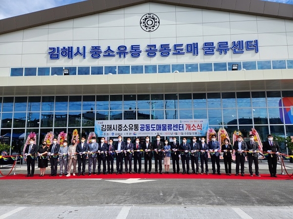 경남 김해시는 21일 지역 소상공인 통합물류시설인 '김해시 중소유통공동도매물류센터' 개소식을 가졌다.