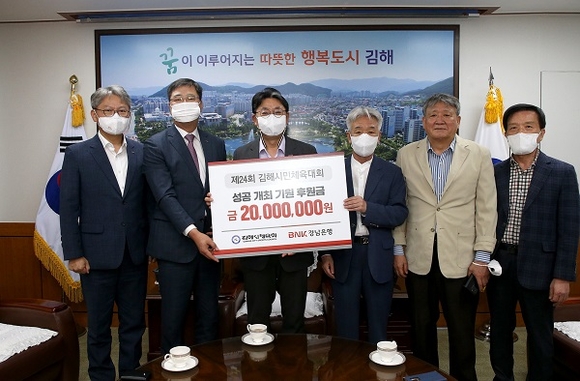 김해시는 BNK경남은행에서 제24회 김해시민체육대회의 성공 개최를 위한 후원금 2천만원을 시체육회에 전달했다고 21일 밝혔다.