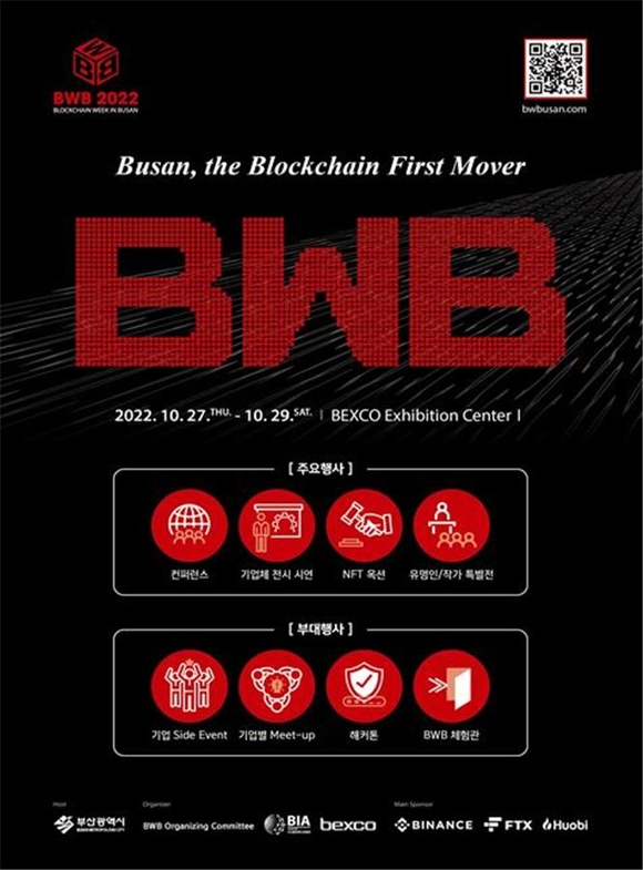 이번 블록체인 위크는 부산시가 주최하고, 글로벌 디지털자산 3대 거래소인 바이낸스, FTX, 후오비가 메인스폰서로 참여한다.
