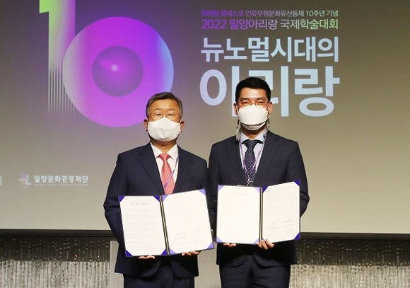밀양문화관광재단은 지난 21일 호텔 아리나에서 아리랑 유네스코 인류무형유산 등재 10주년을 기념하는 '2022 밀양아리랑 국제학술대회'를 가졌다.