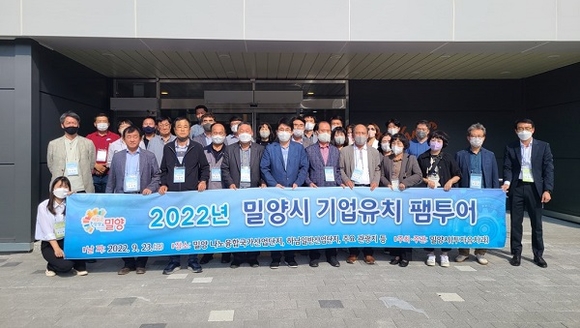 경남 밀양시는 23일 나노융합국가산단과 시에 투자 관심이 있는 기업 관계자 40여 명을 초청해 '기업유치 팸투어'를 가졌다.