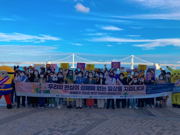지난 22일 오후 5시 부산 광안리해변테마거리에서 들리는 목소리다. 부산여성지원센터 꿈아리가 3년 만에 개최된 제8회 성매매추방주간(9월 19~25일) 기념식 및 거리 캠페인을 개최했다.