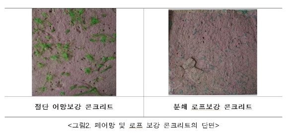 본 연구결과에 따르면, 폐어망과 로프를 분쇄해 섬유형태로 콘트리트에 보강하게 되면 콘크리트의 취성적인 파괴를 방지해 균열의 발생원인인 길이변화를 감소시킨다는 사실을 발견했다.