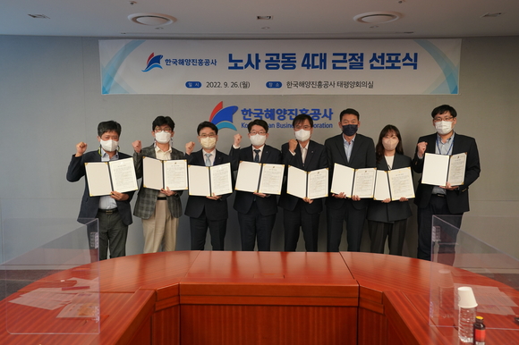 한국해양진흥공사는 지난 26일 4대 괴롭힘(성희롱·성폭력, 직장 내 괴롭힘, 직장 내 갑질, 인권침해) 근절 노사 공동 선포식을 개최했다고 28일 밝혔다.