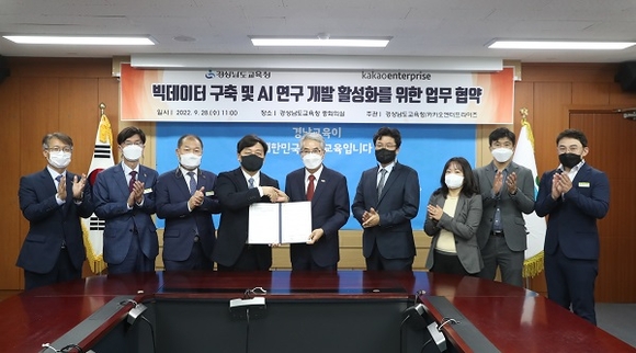 경남도교육청은 28일 청사 중회의실에서 카카오엔터프라이즈와 '아이톡톡'의 교육 데이터에 기반한 인공지능(AI)을 개발하기 위한 업무협약을 체결했다.