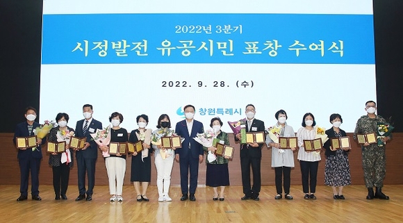 경남 창원시는 28일 시청 시민홀에서 '2022년도 3분기 시정발전 유공시민 표창 수여식'을 가졌다.