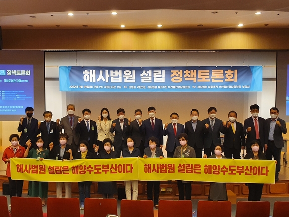 발제를 맡은 김인유 한국해양대 해사법정학부 교수는 "그동안 해사법원 설립의 반대이유가 됐던 재판수요 부족문제, 지역관할 문제, 심급 문제 등은 그동안 숙의된 대안들을 기반으로 충분히 해소될 수 있게 됐다"며 "부산지방법원이 처리하는 압도적인 해사사건 접수 및 처리 현황, 해양관련 인프라 간의 시너지 효과를 고려했을 때 부산이 해사법원 설립의 최적지라는 점은 견고하다"고 말했다.