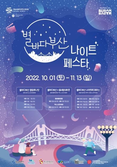 부산관광공사는 오는 10월 1일부터 11월 13일까지 부산시, 한국관광공사와 함께 부산 야간관광 활성화를 위해 '별바다부산 나이트페스타'를 개최한다고 30일 밝혔다.