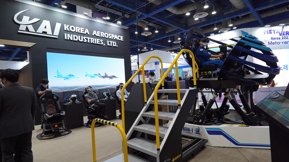 KAI는 한국전자전과 동시 개최되는 제2회 메타버스코리아에 참가해 4차 산업혁명 기술을 접목한 VR조종훈련장비와 교육컨텐츠 등 미래형 훈련체계를 선보였다.
