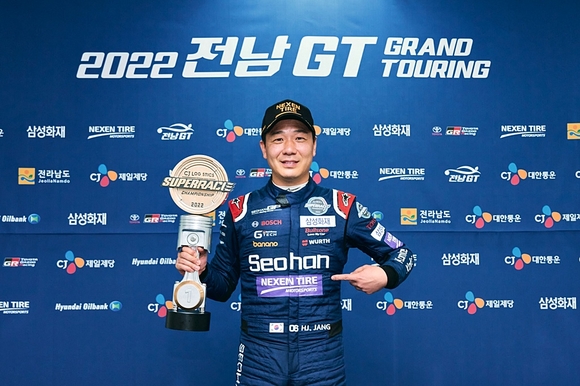 지난 2일 전남 영암 코리아인터내셔널서킷(KIC)서 열린 '전남GT' 대회와 함께 개최된 슈퍼레이스 챔피언십 '삼성화재 6000' 클래스에서 장 선수가 본인의 시즌 첫 우승을 거뒀다.