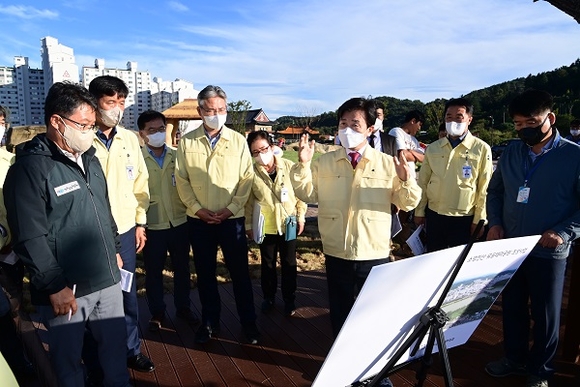이날 축제 주관단체 관계자와 관련 부서장 30여 명이 함께 행사장을 돌며 임시주차장 설치, 셔틀버스 운행, 유등 및 각종 시설물 설치, 행사장 공간배치, 관람 동선, 방역, 환경관리 등 전 분야에 걸쳐 현장 추진상황을 점검했다.