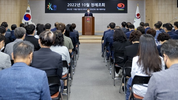 경남 합천군은 5일 군청 대회의실에서 공직자 및 일반인 100여 명이 참석한 가운데 민선 8기 첫 정례조회를 가졌다.