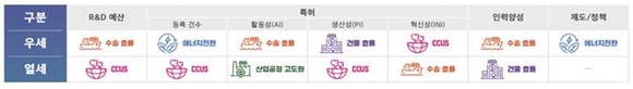 이 보고서에 따르면, 부산은 신재생 에너지와 관련한 '에너지 전환' 부문은 특허 수는 많지만 기술성이 다소 부족하고, 산업공정의 탄소 저감과 관련한 '산업공정 고도화' 부문은 연구개발 예산 투입에 비해 기술의 활동성이 낮은 것으로 나타났다.