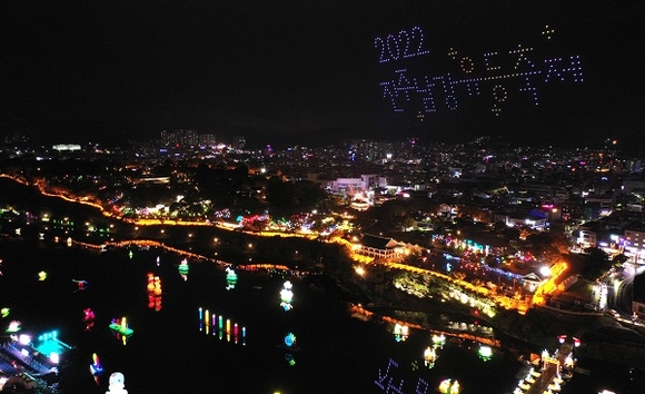 특히 이날 특별 컨텐츠 공연으로 300여 대의 드론이 연출한 환상적인 미디어아트쇼와 진주성, 남강변의 밤하늘을 화려하게 수놓은 수상 멀티미디어 불꽃쇼는 축제장을 찾은 관람객들의 탄성을 자아냈다.