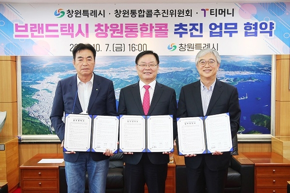 경남 창원시는 지난 7일 오후 시청 접견실에서 브랜드택시 창원통합콜의 성공적 추진을 위해 창원시·창원통합콜 추진위원회·㈜티머니 3자 간의 업무협약을 체결했다.