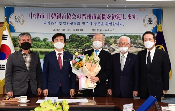 조규일 시장은 10일 일본 나카츠시 한일친선협회 방문단과의 간담회에서 양 도시간의 상호교류와 우호증진에 기여한 나카츠시 한일친선협회 나카노 노보루 회장에게 감사패를 전달했으며, 안도 모토히로 진주시 명예시민이 한일 민간교류를 위해 힘써 준 데 대하여 고마움을 전했다.