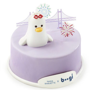 이번에 리뉴얼한 ‘부기 케이크’의 명칭은 ‘부기와 함께 불꽃놀이 케이크’다. 케이크에는 BTS 콘서트 메인 색상인 연보라색의 초콜릿이 덮여 있으며, 그 위에는 부산 대표 가을 축제인 ‘부산불꽃축제’를 즐기는 ‘부기’의 모습이 형상화돼 있다.