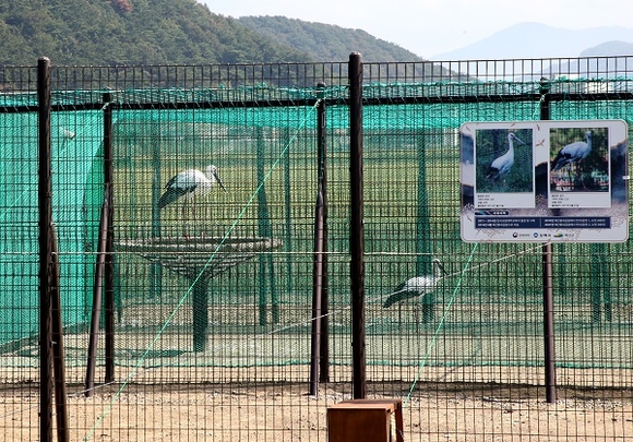 금이와 관이는 지난달 30일 충남 예산황새공원에서 옮겨 왔으며, 신체 활동과 먹이활동이 활발해 이미 방사장 환경 적응을 마쳤다.