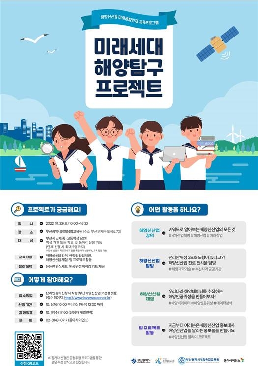 해양탐구 프로젝트는 부산시 해양농수산국과 부산테크노파크가 개발 중인 해양신산업 분야 생애 전주기 맞춤 교육 콘텐츠 중 지역 청소년을 대상으로 하는 프로그램이다. 부산시교육청 직속 창의융합교육원과 연계해 진행한다.