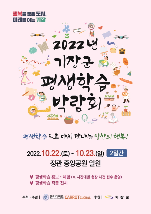 부산 기장군은 오는 22일과 23일 양일간 정관읍 중앙공원 일원에서 '2022년 기장군 평생학습 박람회'를 개최한다고 밝혔다.