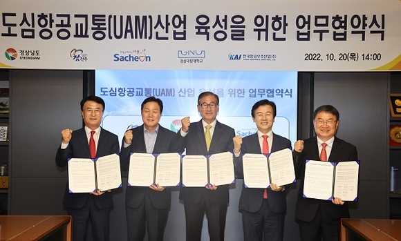 경남도는 20일 오후 한국항공우주산업(KAI)에서 진주시, 사천시, 경상국립대학교, KAI와 함께 도심항공교통(UAM) 산업 육성을 위한 업무협약을 체결했다.