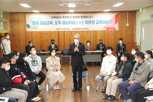 박종훈 경남도교육감이 20일 특수교육 지원 환경 조성과 장애 특성별 맞춤형 지원을 확인하고, 정책의 현장 적합성을 높이고자 진주혜광학교를 방문했다.
