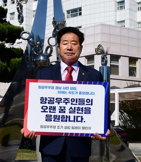 김진부 경남도의회 의장이 20일 '항공우주청 조기 설립' 릴레이 챌린지에 동참했다.