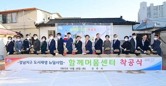 경남 진주시는 강남지구 도시재생뉴딜사업의 거점시설인 '함께머뭄센터' 착공식을 20일 개최했다.